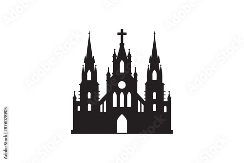 cathedral, silhouette, vector, illustration, icon, design, printable, graphic, clip art, print, file, hoodie, t-shirt, pillow, cover, isolated, art, template, line, abstract, outline, church, gothic, mediaeval, architecture, landmark, symbol, spiritual, sacred, black, white, minimalist, religious, vectorized, heritage, editable, decorative, creative, shape, graphic, building