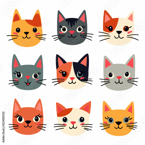 cat, animal, cartoon, vector, illustration, adjusting, icon, pet, kitten, dog, pretty, head, fun, baby, fox, face, character, collection, tiger, model, art, conception, mammal, domestic