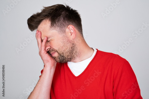 adult, cephalalgia, male, migraine, pain, person, ache, casual attire, depression, face, photogenic, head, ill, stress, studio, suffering, sleepy, white, young, guy, health, disease, man, problem, sick, stressed, unhappy, worry, caucasian, pressure, depressed, desperate, expression, hand, hispanic, loud, sad, sorrowful, disease, european, exhausted, mental, nervous, high-blood-pressure, blood