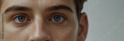 caucasian, young, man, eye, panoramic, banner, skin, care, beauty, advertisement, concept, bright, white, clear, background, face, woman, eye, children, person, boy, closeup, people, looking, hair, head, nose, smile, closeup, teenage, up, expression, look, brown, 1, close, blue