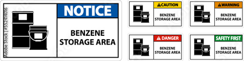 Caution Benzene Storage Area Sign On White Background