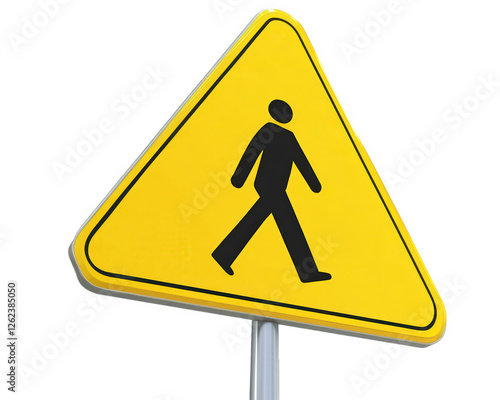 Caution pedestrian crossing sign with walking figure in yellow. This sign is essential for ensuring safety in areas with foot traffic