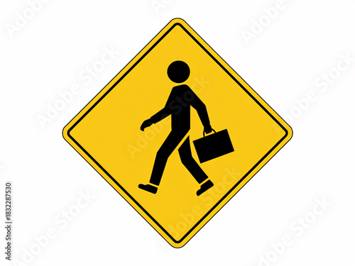 Caution sign for pedestrian crossing with businessman carrying briefcase, use for safety campaign or workplace warning