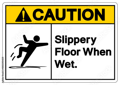 Caution Slippery Floor When Wet Symbol Sign,Vector Illustration, Isolate On White Background Label. EPS10