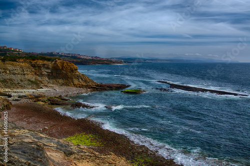 portugal, sea, ocean, beach, sky, travel, blue, view, village, europa, water, coast, wave, sunset, background, horizon, destination, rock, landscape, beautiful, nature, atlantic, natural, vacation, cloud, shore, seascape