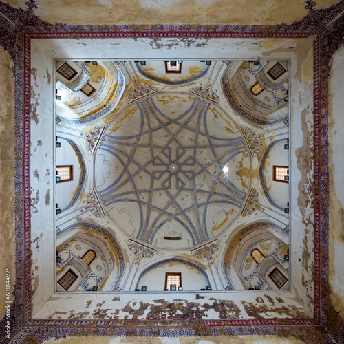 Ceiling of Mausoleum of the Seljuq sultan Ahmad Sanjar in Merv, an ancient city on the Silk Road in Turkmenistan. Merv was the capital city of many empires and at its hayday the largest in the world.
