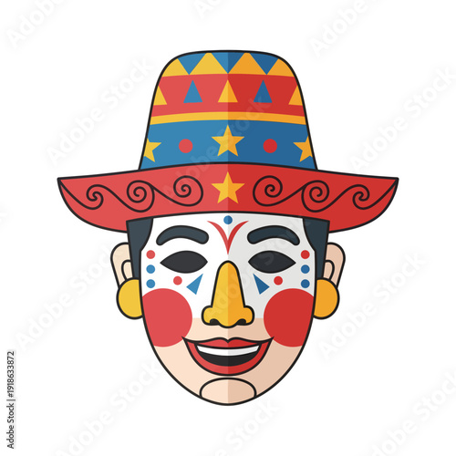 face, hat, celebration, paint, festival, joy, vibrant, smile, culture, traditional, colourful, decoration, design, art, event, holiday, party, entertainment, fun, happiness, cheerful, merriment, occasion, spain, spanish, tradition, folklore, custom, heritage, identity, community, people, emotion, expression, creativity, beauty, ornamentation, fancy, dress, accessory, style, pattern, motif, theme, atmosphere