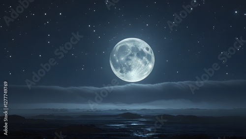 Celestial Glow of the Moon Illuminating a Foggy Landscape Under a Starry Sky