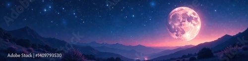 Celestial scene with twinkling stars and a full moon , stars, night sky