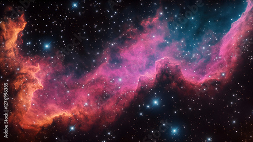 nebula, cosmic, celestial, landscape, dust, colours, emerald, magenta, blue, red, star, universe, cosmos, immensity, mystery, aethereal, galactic, transformation, light, tapestry, vibrant, stellar, birth, formation, astronomy, astrophotography, celestial bodies, galaxy, interstellar, astrophysics, space exploration