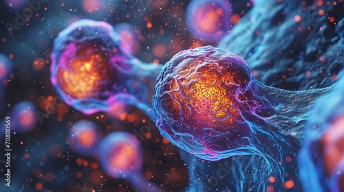 cellular therapy and regeneration, microscopic view of body cells, research of stem cells