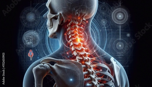 Cervical spine pain, spine injury, anatomy and health concept