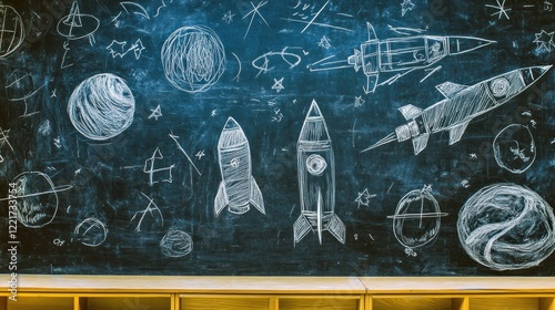 classroom, blackboard, space, rocket, chalk, drawing, planet, star, education, children, school, learning, astronomy, science, cosmos, universe, galaxy, exploration, discovery, future, imagination, creativity, inspiration, childhood, dream, cognition, wisdom, technology, innovation, progress, success, growth, potential, opportunity, development, ambition, vision, mission, goal, achievement, aspiration, teacher, student, background