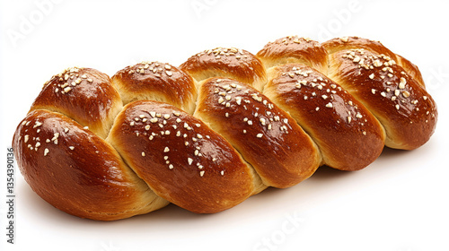 challah, a traditional braided loaf, a symbol for Shabbat and Rosh Hashanah, on a white background with a clipping path