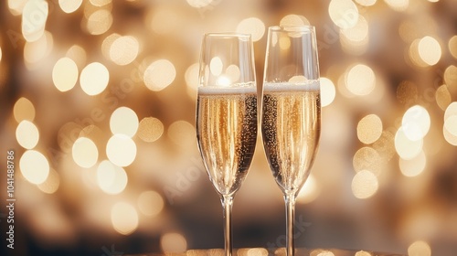 Champagne glasses on a festive table with a shimmering bokeh backdrop A celebration banner featuring sparkling wine