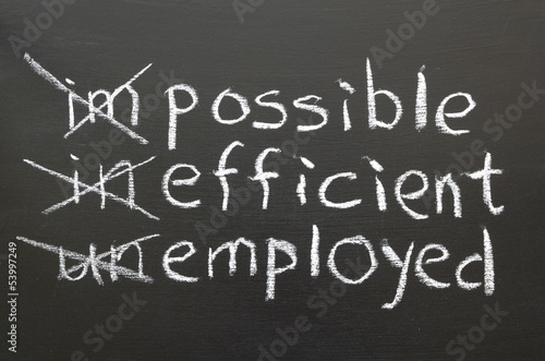 impossible, unemployed, change, organise, concept, possible, motivation, recruitment, mind, thinks, efficient, employed, employment, blackboard, blackboard, challenge, written, text, message, white, black, job, positive, thinking