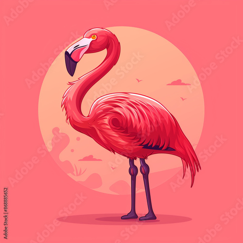 flamingo, charming, cartoon, graceful, bird, vector, icon, illustration, pink, elegant, wildlife, vibrant, nature, aquatic, long legs, playful, tropical, water bird, colourful, striking, stylish, slender