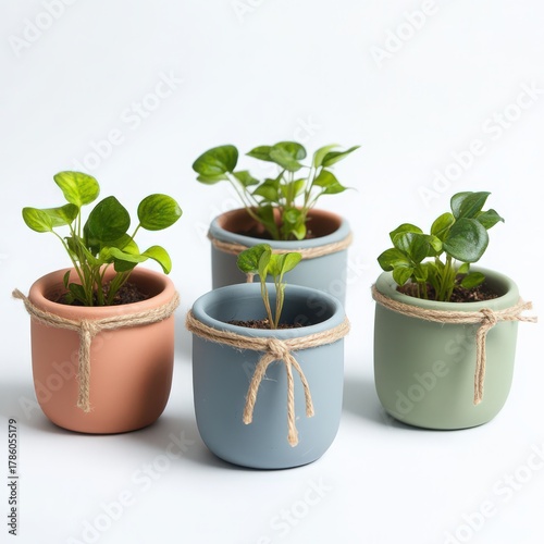 Charming mini terracotta pots with string accents for delightful plant displays in various colors