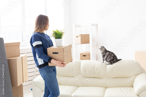 woman, holding, box, thing, cat, home, caucasian, estate, mortgage, modern, lovely, indoor, warm, house, comfortable, happiness, rent, cosy, interior, adult, new, welcome, family, female, cheerful, love, property, lifestyle, investment, white, happy, building, pretty, person, architecture, decoration, people, floor, concept, apartment, design, joy, grey, party, cute, young, greeting, style, friendly, room
