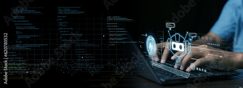Chatbot Chat with AI, Artificial Intelligence. Man using technology smart robot AI
