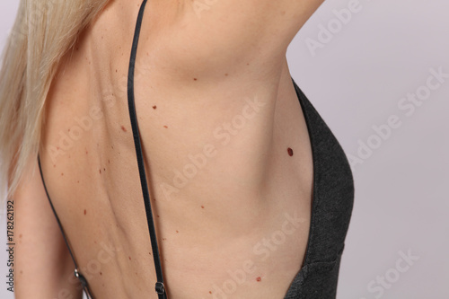 Checking benign moles : Beautiful Woman with birthmarks on her skin. Laser skin tags removal
