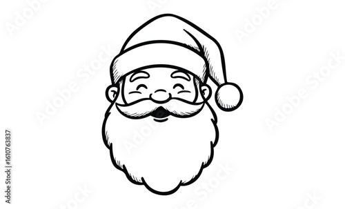 santa, claus, face, hat, beard, cartoon, black, white, illustration, cheerful, jolly, festive, holiday, christmas, drawing, outline, happy, smiling, character, traditional, icon, symbol, winter, joy, celebration, december, graphic, art, vignetting, simple, cute, old, man, costume, merry, design, vintage, joyful, fun, bearded, classic, head, seasonal, whimsical