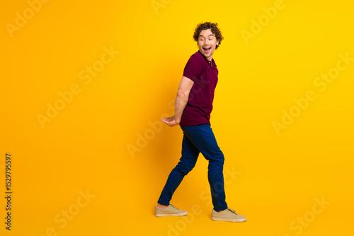 young, man, male, mature, gentleman, guy, student, photogenic, fashion, model, lifestyle, casual attire, style, burgundy, t-shirt, outfit, playful, yellow, background, happy, cheerful, gesture, positivity, energy, leisure, smile, bright, expressive, cheerfulness, dynamic, excited, active, mood, colourful, joyful, portrait, advertising, marketing, promotion, carry, hold, pull, push, product, object, copy space, hard, heavy, effort