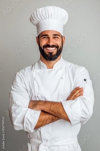 chef, holding, prepared, dish, smile, isolated, culinary, setting, professional, cook, uniform, male, job, young, man, hat, adult, person, occupation, portrait, profession, caucasian, epicure, eatery, white, staff, kitchen, work, service, background, photogenic, grey, food, standing, 1, cookery, business, beard, receipe, cap, human, happy, chief, apron, confident