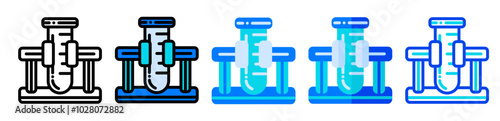 Chemistry beaker icon set, test tube illustration in line, filled, flat style, suitable as a symbol for chemicals, research, experiment, lab, flask, and laboratory.