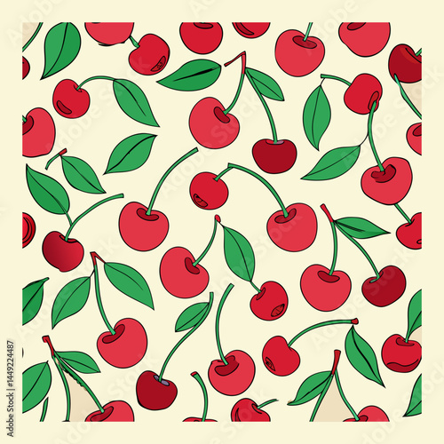 Cherry Fruit Pattern with Green Leaves – Seamless Vector Design