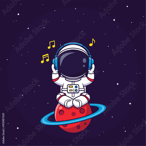astronaut, space, earphones, planet, music, cartoon, vector, cute, illustration, astronaut, astronaut, outer space, galaxy, universe, star, celestial, cosmic, sitting, cross-legged, meditating, listening, sound, audio, entertainment, relaxation, exploration, discovery, adventure, fantasy, imagination, dream, children, childish, whimsical, adorable, minimalist, character, mascot, icon, graphic, digital artwork, science fiction, science fiction, journey