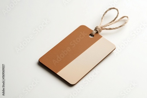 Chic merchandise tag displaying abstract patterns minimalist studio product photography contemporary environment close-up view design concept