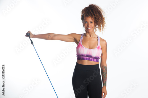 woman, fitness, exercise, sport, isolated, young, body, slim, beauty, lovely, fit, healthy, white, string, health, gym, lifestyle, diet, people, weight, training, band, person, athlete