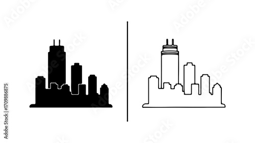 chicago, skyline, silhouette, architecture, building, urban, city landscape, illinois, landmark, tower, structure, design, illustration, graphic, black, white, contrast, modern, contemporary, metropolis, downtown, skyscraper, facades, outline, shape, iconic, view, panorama, horizon, daytime, exterior, commercial, residential, office, district, neighbourhood, development, construction, art, creative, visual, composition, element, symbol, representation, image, asset, digital, vector