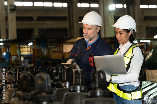 chief engineer Check the work of the workers in the old factory to rehearse the engine...