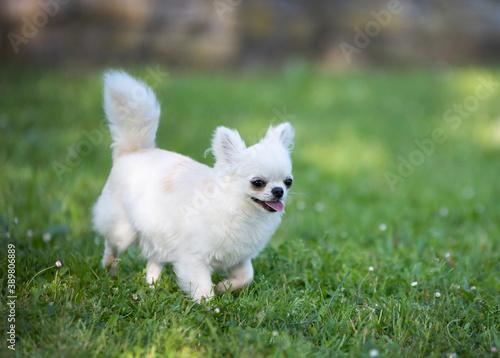 dog, puppy, chihuahua, pet, animal, purebred, little, white, brown, nature, freedom, garden, grass, motion, running, playing, movement, happiness, activity