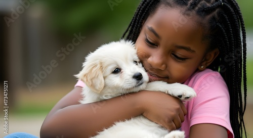 Child hugging happy pet dog in cozy home environment, showing love, friendship, and bond