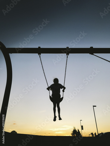 children, silhouette, swing, recess, playground, sky, sunset, playing, game, fun, girl, female, high, sunrise, young, sun, summer, outdoors, active, activity, recreation, leisure, daughter, one person, park