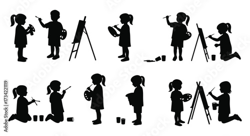 art, children, drawing, painting, easel, brush, palette, creative, illustration, vector, artwork, design, graphic, hobby, education, school, class, studio, young, children, art, craft, activity, passion, imagination, talent, expression, skill, learning, development, silhouette, black, white, minimalist, contemporary, graphic design, artistic