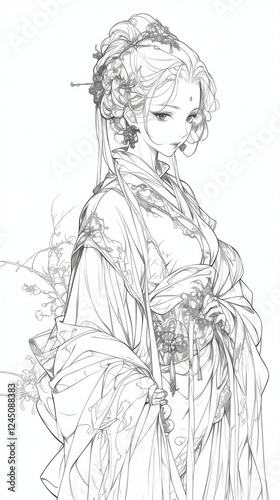 Chinese Beauty Line Art - Traditional Fashion Illustration