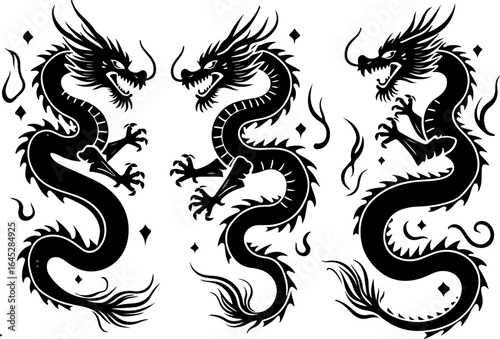 Chinese Dragon Vector Trio | Mythical Asian Dragon Clipart