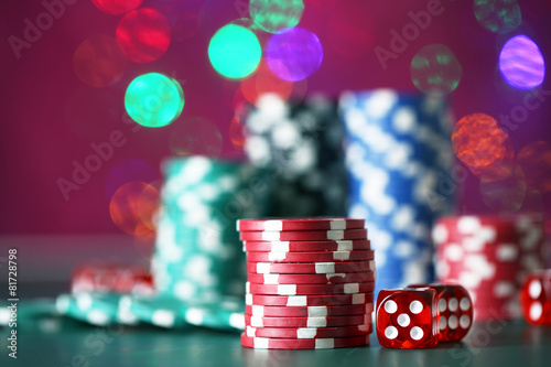 Chips for poker on shiny background