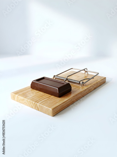 mousetrap, trap, chocolate, bait, temptation, danger, diet, addiction, sugar, risk, unhealthy, concept, lure, sweet, diabetes, obesity, weight loss, catch, wooden, spring, calorie, craving, mistake, snack, fat, symbolism, problem, metaphor, eating, habit, discipline, breaking, struggle, lifestyle, still life, chocolate bar, conceptual, image, humor, food, design