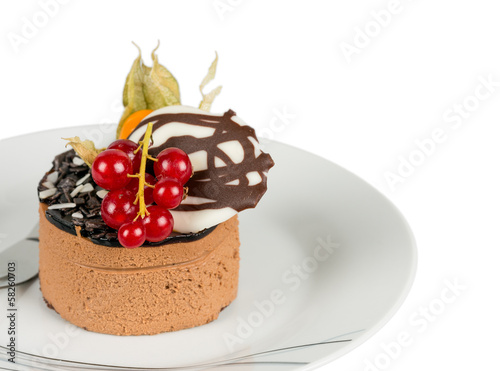chocolate, cake, redcurrant, currant, berry, sweet, small, served, dessert, isolated, red, pie, dish, cafes, diet, bake, food, fork, slice, plate, white, brown, piece, tasty, cream, sugar, fruit, fresh, nobody, luxury, mousse, bakery, pastry, coated, closeup, epicure, brownie, elegant, stylish, delicacy, closeup, decorate, colourful, delicious, raspberry, strawberry, decoration, indulgence, gooseberry, background