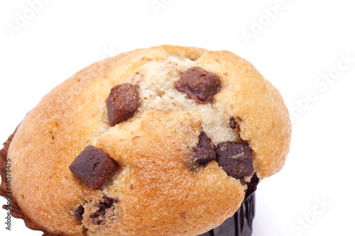 chocolate chip muffin on a white background