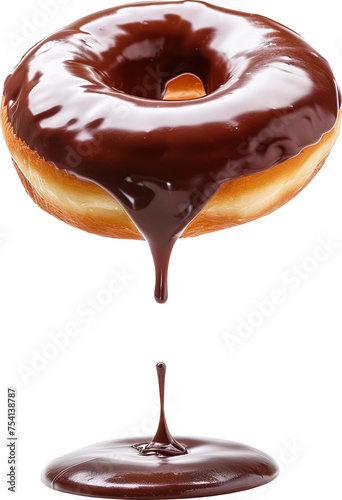 Chocolate donut doughnut flying melted liquid isolated cutout on transparent background. Mockup advertisement. product presentation.