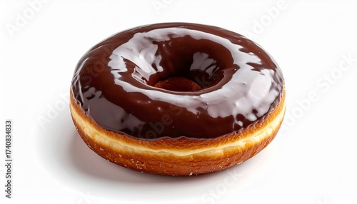 Chocolate Glazed Donut on White Background with Studio Lighting