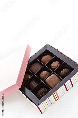 assorted, brown, candy, chocolate, dessert, fancy, food, gift box, epicure, indulgence, pink, premium, square, sugary, sweet, sweet food, sweet, truffle, white, box, confection, different, open, round, small, variety