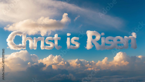 christ is risen word made of clouds in blue sky background