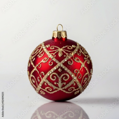 Christmas Ball, red bauble, isolated on white background, full depth of field